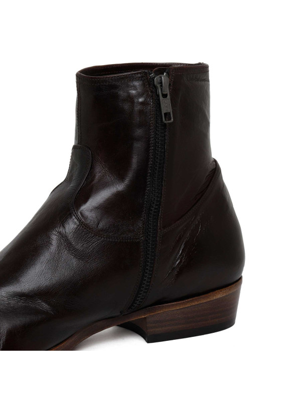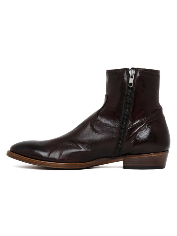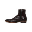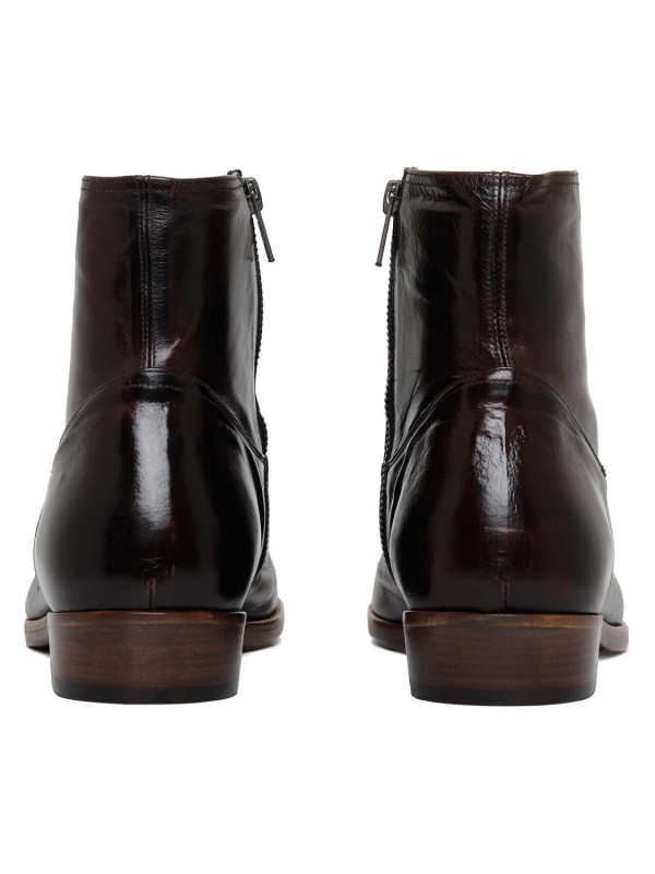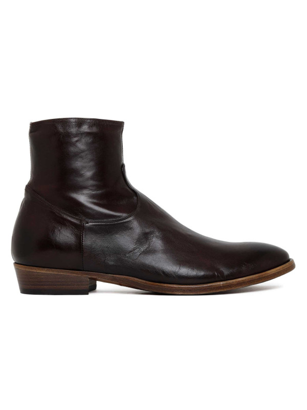 Stivaletti in jagger marrone scuro con chiusura zip laterale, punta a mandorla, tacco 3.0, fodera in tessuto e suola in pelle.